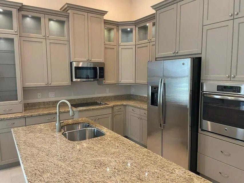 WELL MAINTAINED 3-BEDROOM HOME IN TESORO CLUB. Single-level living with an open floor plan, bright great room with 14-ft recessed tray ceiling, formal dining room, and private den with double doors. Chef's kitchen with double-stacked gray cabinets and stone countertops. Spacious primary suite with two closets, and bath with double vanities, garden tub and walk-in glass shower. Private backyard with mature plants. Convenient to the Turnpike, Publix, restaurants, and new Florida Coast Medical Center. Gated golf community with 24-hour manned gates; Annual lease; first, last & security required; no pets. Tenants may join Tesoro Club amenities via available memberships. Annual lease; first, last & security required; no pets. Lease includes cable, internet, security, and weekly yard service.