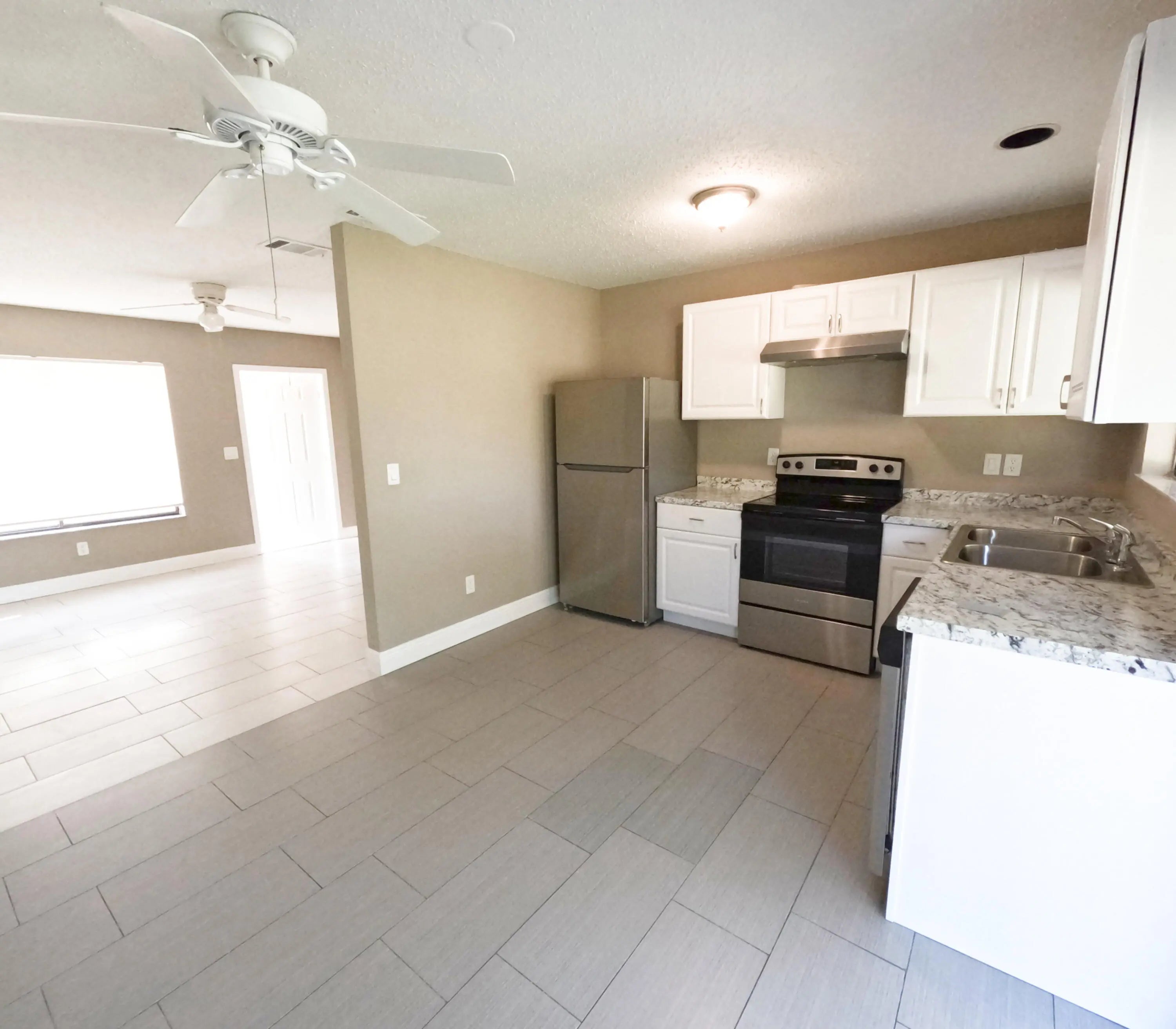 Discover this cozy and clean 3-bedroom, 2-bathroom single-family home, perfectly situated in the heart of Port St. Lucie. This inviting property features newer flooring, a beautifully remodeled kitchen, fresh paint, and updated baseboards, giving the home a modern yet comfortable feel. Enjoy the Florida lifestyle with a fully fenced, oversized backyard and a large screened-in patio, perfect for relaxing or entertaining. Additional highlights include a half-garage conversion offering extra storage and a utility room with air conditioning. The freshly painted exterior adds to this home's curb appeal. Lawn care is included, making maintenance a breeze. Renters must meet income requirements of 2.5 times the rent, have a good rental history, and no prior evictions. Qualified Candidate Only!