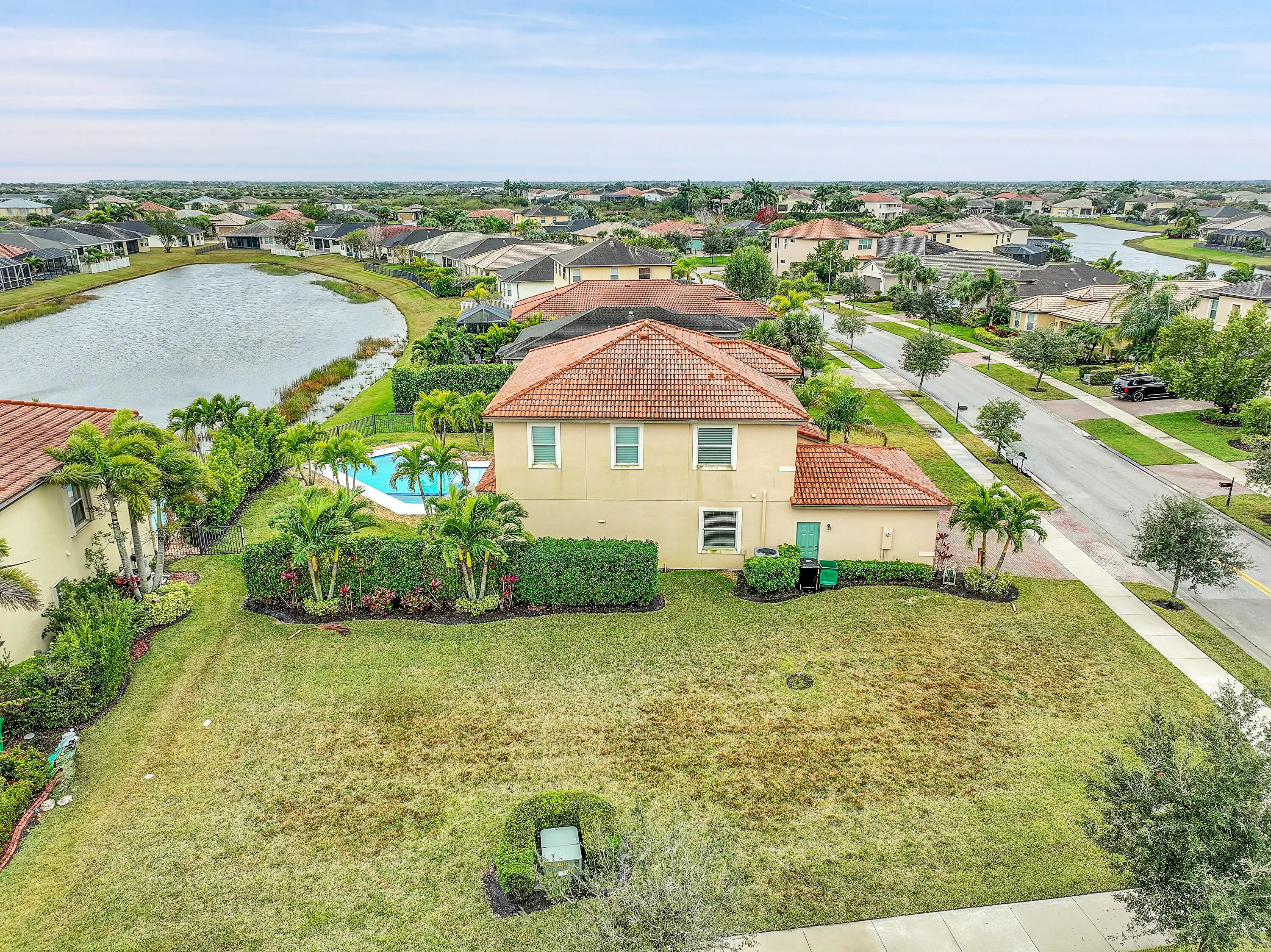 Discover spacious living in this 3-bedroom + den, 2.5-bathroom lakefront pool home in TownPark at Tradition, home sits on a 1/3 acre lakefront corner lot! Perfect for entertaining, the open floor plan includes upgrades like impact windows, a gourmet kitchen with 42'' cabinets, a custom backsplash, stainless steel appliances, and a stone accent wall. Ceramic tile is on a diagonal pattern , private pool with lake views add elegance and charm. The master suite provides a peaceful retreat with serene lake views. Recent updates include a new water heater, refrigerator, and dishwasher. HOA fees cover cable, high-speed internet, irrigation, a manned gate, and a beautiful clubhouse. Tradition offers parks, dining, shopping, and proximity to the Cleveland Clinic and I-95. Call today for a tour!!