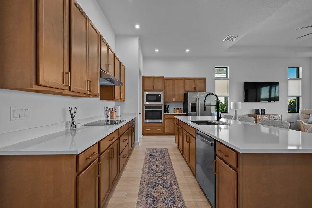 Experience upgraded luxury in PGA Verano with this 2024 Extended Lila model offering 3 bedrooms, 3 full baths and a rare double master suite layout. Designed with premium designer upgrades throughout, this open-concept home features enhanced cabinetry, and countertops, custom window treatments, high-end finishes and quality flooring that set it apart. Enjoy an oversized lot with fully fenced waterfront backyard for added privacy and serene views, plus an expanded three-car garage for exceptional storage and functionality. Located in the gated, resort-style PGA Verano community with world-class amenities, this residence showcases thoughtful upgrades and elevated living at every turn.