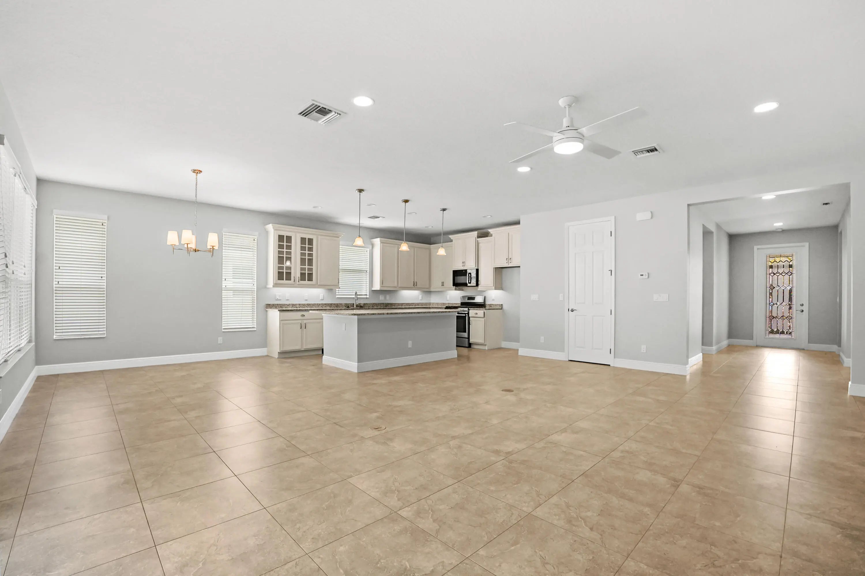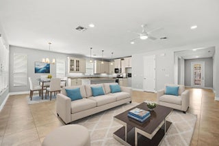Vitalia at Tradition 55+ Gated Community. Welcome to this beautifully maintained 1-story home in the desirable Vitalia at Tradition, a gated 55+ community. Featuring 3 bedrooms and 2 bathrooms across 2,012 sqft of living space, this home offers comfort and convenience in every corner.Step into the foyer leading to a bright, open layout. The kitchen boasts a center island, appliances, and ample cabinets for storage, perfect for cooking and entertaining. Adjacent is the laundry room, complete with a washer, dryer, and utility tub.