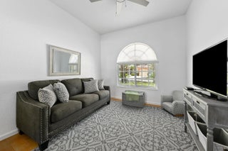 Beautifully UPDATED Move in Ready, One Story, Single Family Home. EXTERIOR NEWLY PAINTED. Just under 1700 all tiled square feet in this pristine, Split plan 2 Bedroom PLUS Large Den, 2 bath, 2+ car garage home. Open floor plan with modern knockdown textured ceilings throughout. Large spectacular eat in kitchen with white quartz countertops, marble backsplash, stainless steel appliances and pull out storage. Huge primary bedroom with walk in closet. Spacious en-suite custom designed remodeled bathroom has frameless glass shower, soaking tub, dual sinks, quartz countertop and separate toilet. Private backyard with mature trees and screened lanai. Hurricane impact sliding doors/windows and convenient accordion shutters. Main living area features high