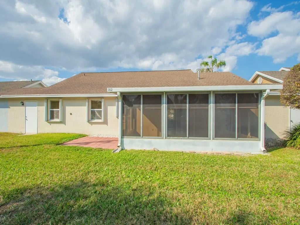 Charming home located in Kings Isle, a desirable 55+ community. Features 2 bedrooms, 2 bathrooms, and a one car garage. Title flooring throughout, updated kitchen, newer LG washer,2018 W/H. 2016 A/C, and accordion hurricane shutters for your piece of mind. Extra parking space across the street and shed for extra storage. Relax and unwind in the spacious screened and enclosed patio perfect for relaxing or entertaining. Hassle free HOA includes Lawn Care, internet, cable, and manned guard gate Welcoming Resort style Clubhouse with recreational facilities and over 30 interesting clubs and many events to choose from. Conveniently located near shopping, medical center, golf course, and I-95,