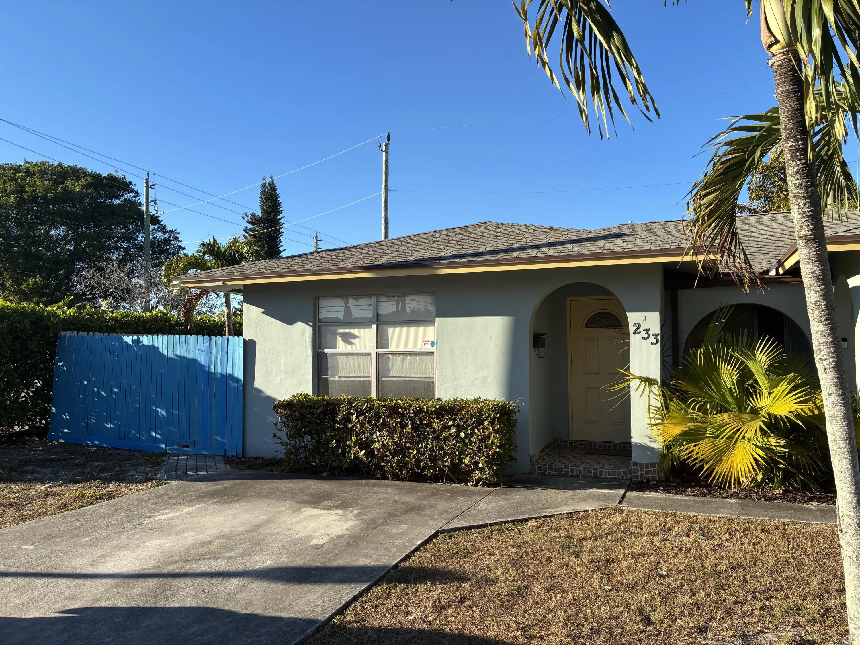 QUAINT, QUIET & CLEAN 2BR/1BA WITH LARGER FENCED PAVER PATIO. FABULOUS LOCATION IN SOUGHT AFTER SOSO AREA (SOUTH OF SOUTHERN) EAST OF OLIVE. RARE OPPORTUNITY AS TENANTS ARE LONG TERM LAST TIME THIS UNIT RENTED FOR MANY YEARS. THIS DUPLEX APARTMENT FEELS LIKE A HOME WITH OFF STREET PARKING AND LARGER PRIVATE SIDE YARD/PATIO. PERFECT FOR WORK FROM HOME- 2ND BR FOR OFFICE / GUEST. FANTASTIC LOCATION ONE BLOCK TO THE INTRACOASTAL - ENJOY THE BIKE RIDING, JOGGING, WALKING. CLOSE TO DOWNTOWN WPB, RESTAURANTS, SHOPPING, MINUTES TO AIRPORT, PALM BEACH, MORE. ALL TILE. WASHER / DRYER IN PLACE. NEARBY. ST JULIANA AND OLIVE ELEMETARY. W/D IN PLACE , TENANT RESPONSIBLE TO MAINTAIN.