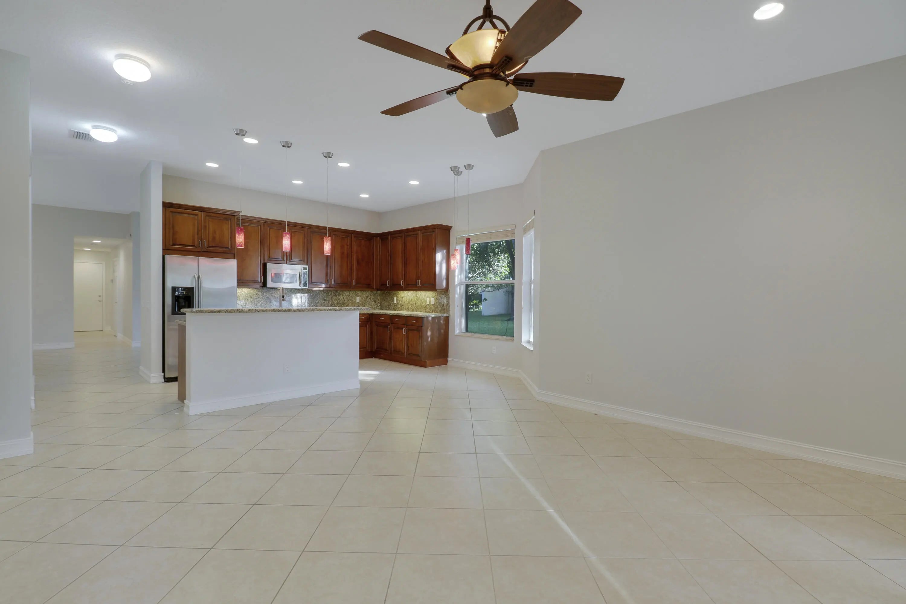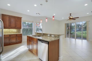 Beautifully Lake view one-story, 4-bedrooms, 2-bathrooms, two-car garage. Enjoy serene water views from the kitchen, family room, and primary suite.The open-concept kitchen overlooks the spacious family room and offers granite countertops, stainless steel appliances, a large pantry, and a sunny eat-in area. Tile flooring runs throughout the main living areas. This home also features a split-bedroom floor plan, volume ceilings, walk-in closets, and a private patio.Ideally located near the clubhouse amenities, including a resort-style pool, fitness center, playroom, tennis courts, basketball court, and playground. Located in Canyon Isles, a beautiful, pet-friendly community with a 24-hour manned guard gate.