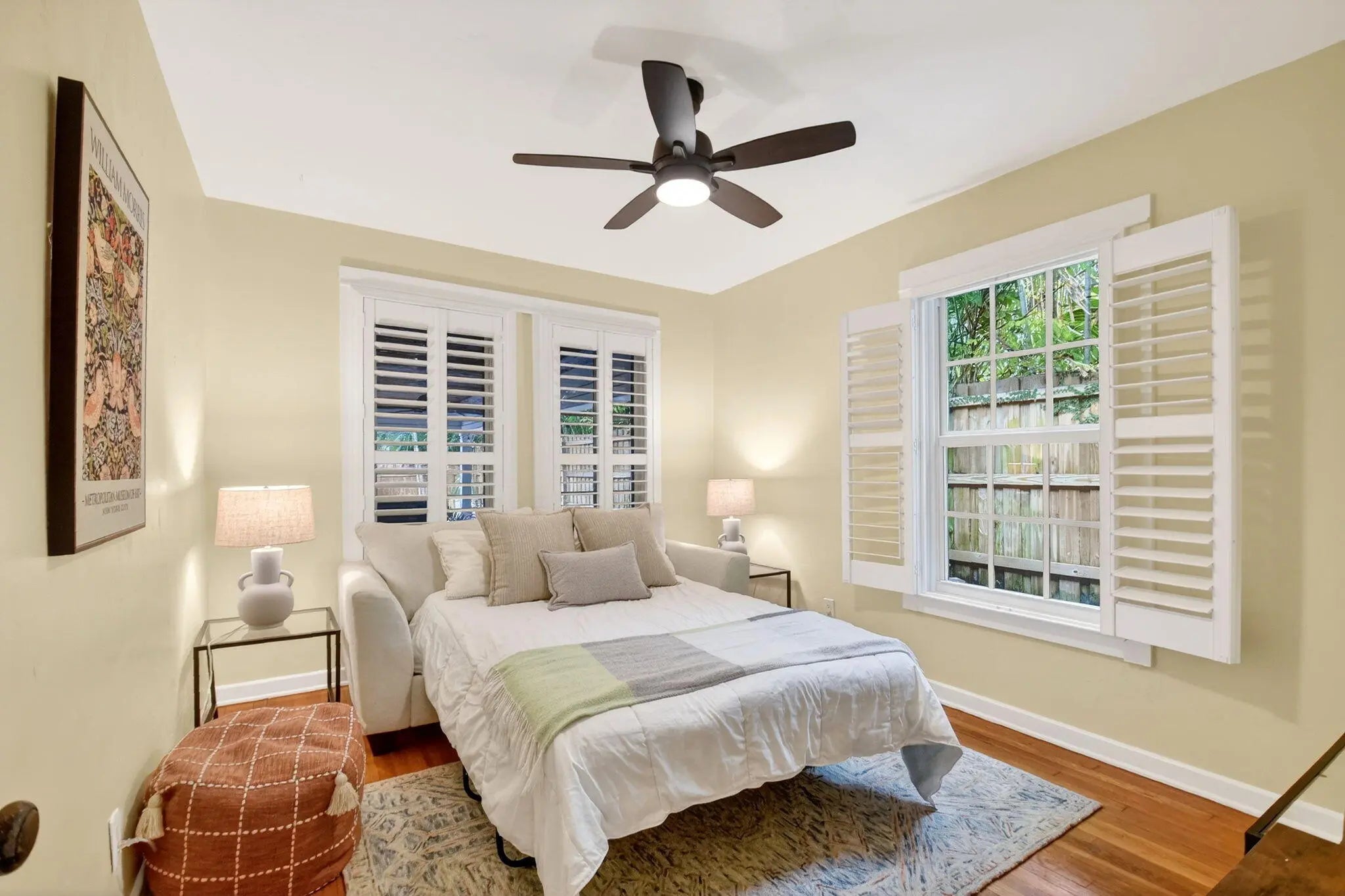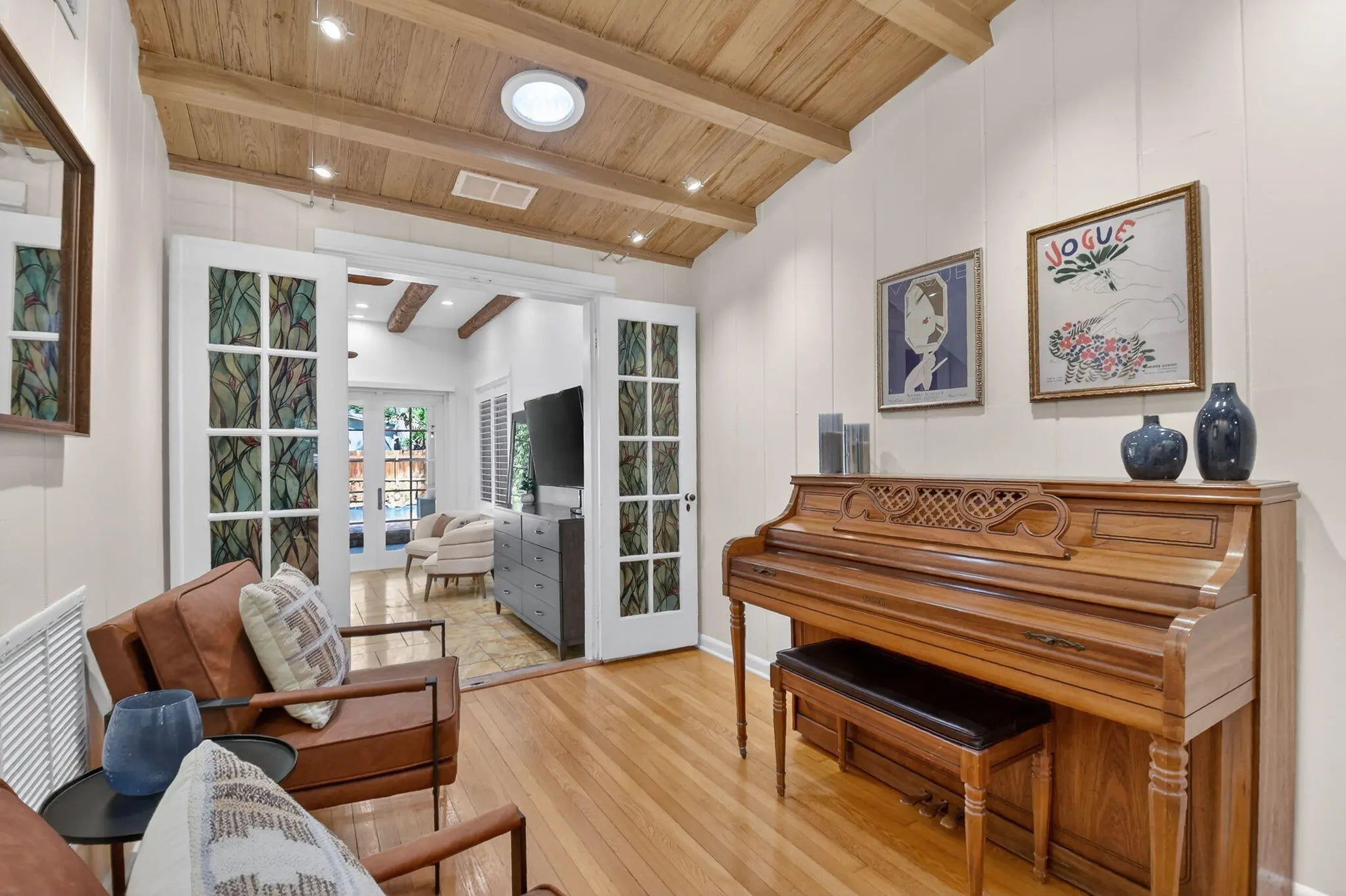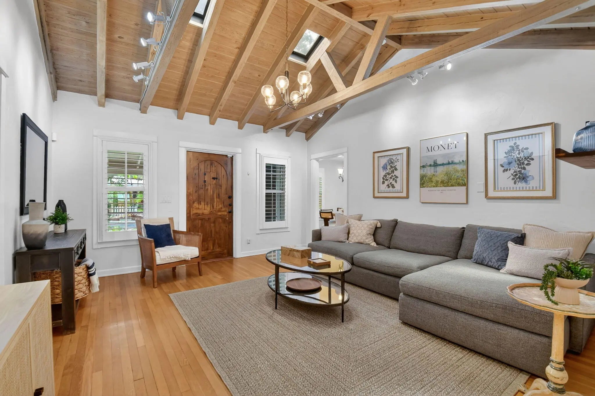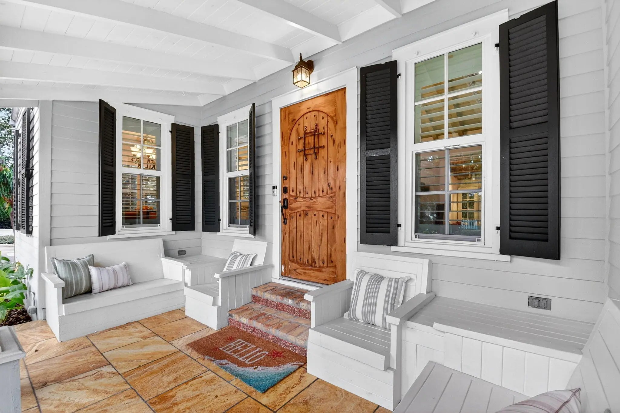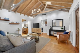 A rare architectural treasure set on a desirable corner lot, this 1,811-square-foot residence (2,482 total square feet) has been masterfully reimagined to seamlessly blend traditional Key West charm with a refined Craftsman interior. Recipient of the prestigious Historic Preservation Award in 2010, the home stands as a timeless tribute to thoughtful design and enduring quality.Positioned to maximize space and natural light, the corner setting offers an open, airy feel with room to breathe. Constructed of solid cypress, the residence showcases exceptional craftsmanship throughout -- from exposed rafter tails and vaulted, beamed ceilings to original oak flooring and custom built-ins. Skylights bathe the interiors in natural light, highlighting curated architectural details at every turn.