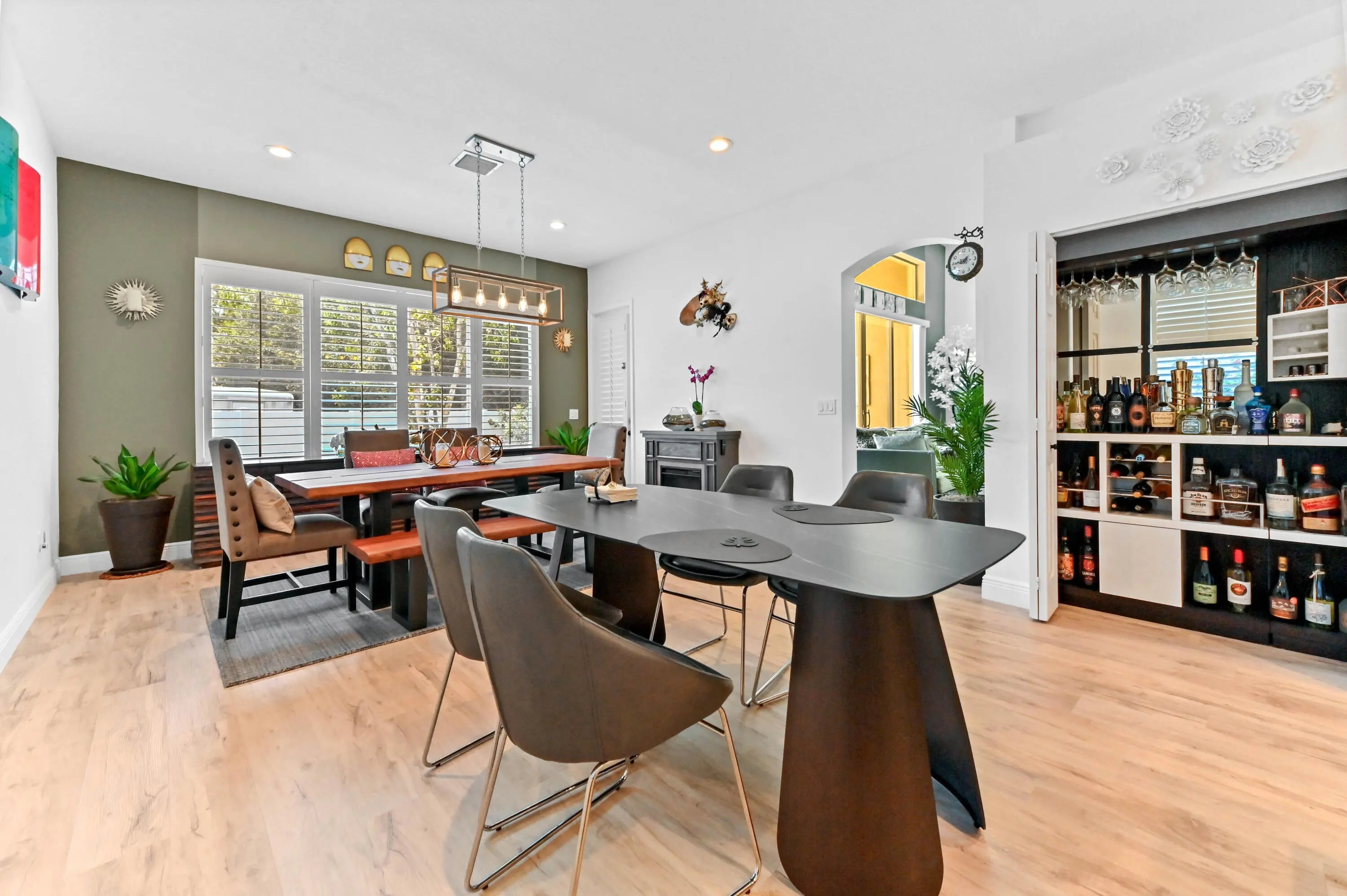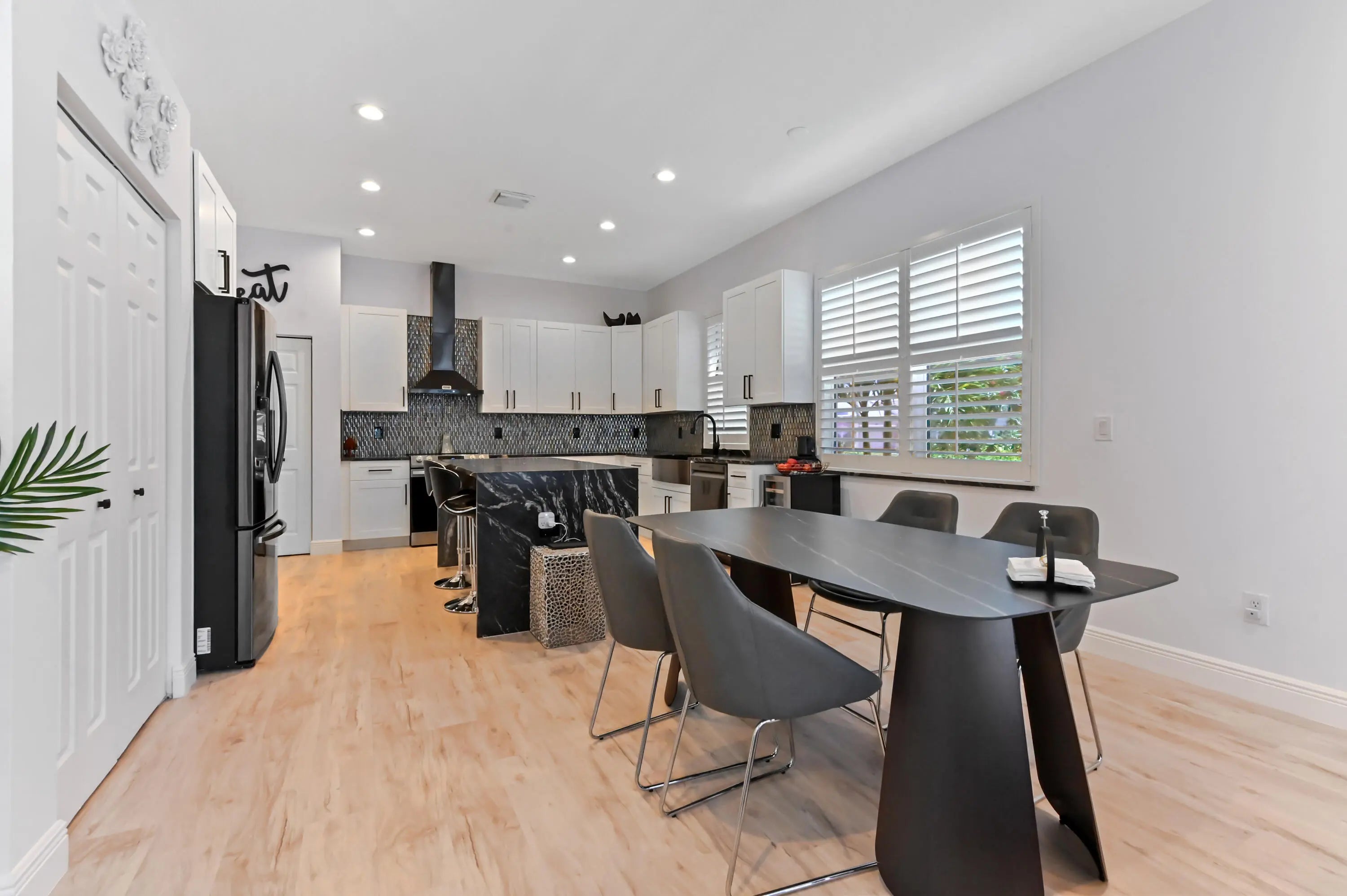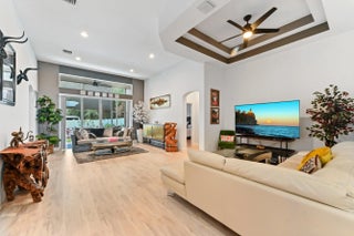 Welcome to this beautiful 1-story home in the gated community of Andros Isle, perfectly situated on a corner lot within a quiet cul-de-sac. Boasting 2,237 sqft of living space, this residence offers 3 bedrooms and 3 bathrooms, designed for comfort and style. Step inside through the impressive double-door main entrance to find elegant plantation shutters throughout and a spacious, open layout. The kitchen is a chef's dream featuring a large island with bar seating, granite countertops, stainless steel appliances, and a stainless steel farmhouse sink, complemented by ample cabinet storage.
