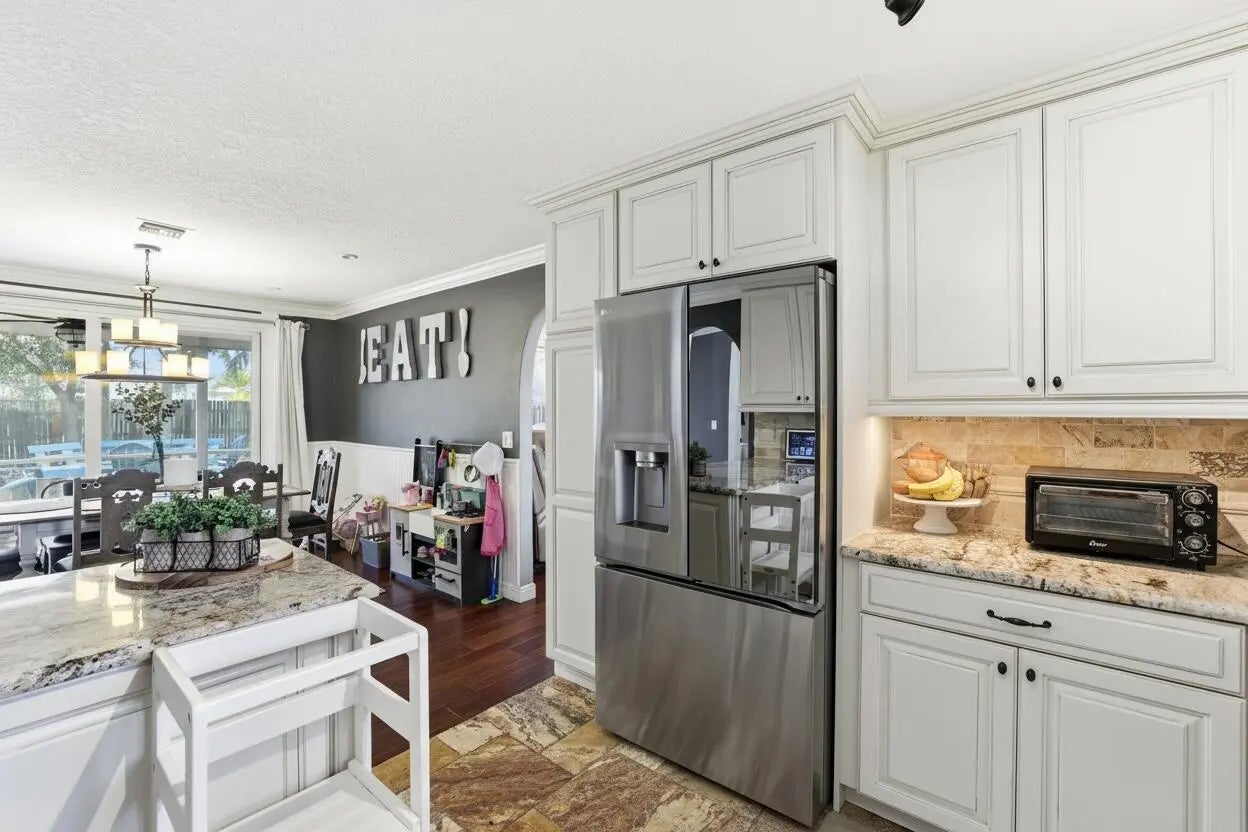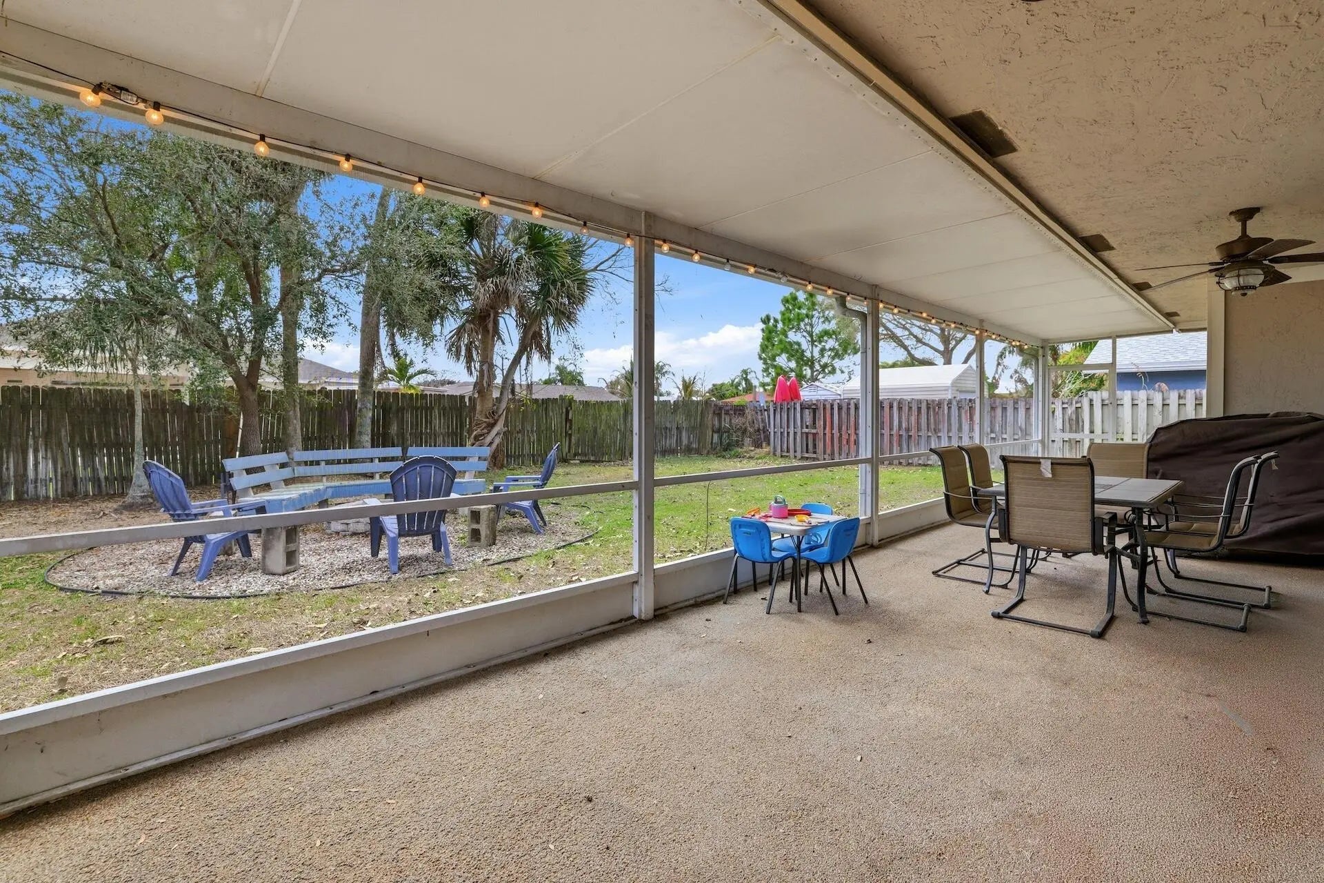 Highly motivated seller! Don't miss this opportunity to own a beautifully maintained 3-bed, 2-bath home in the sought-after community of La Mancha right next to the park! This home offers comfort, smart upgrades, and great indoor-outdoor living. This home features a fully fenced backyard, fire pit with seating, and pre-wiring for patio speakers--perfect for relaxing or entertaining. Impact front door, impact guest bath window, and impact sliding glass door provide added security and peace of mind. Additional exterior highlights include newer garage door springs and an A/C unit less than 4 years old.Inside, the home features a premium refrigerator with extended warranty, newer dishwasher, recessed in-ceiling theater speakers, upgraded Nest Thermostat (2025), MyQ smart