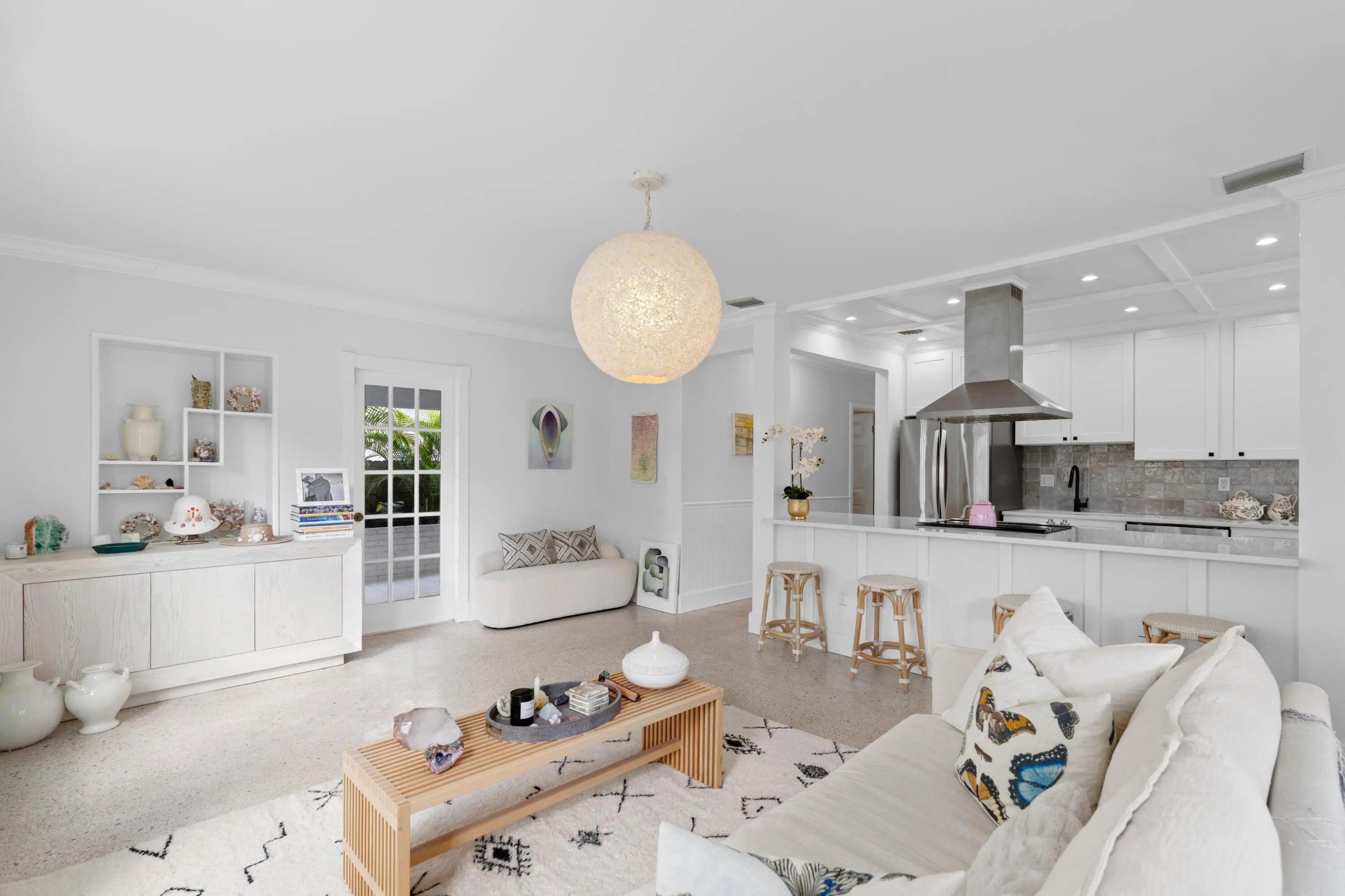 If you believe beachfront living requires an oceanfront address, think again. Nestled in the highly desirable Historic Southland Park neighborhood, this beautifully renovated residence offers the essence of coastal living just one block from the Intracoastal Waterway. Thoughtfully updated with new impact glass windows and doors, upgraded electrical and plumbing systems, and solid concrete block construction, this home blends timeless charm with modern peace of mind.The main residence features three bedrooms and beautifully renovated bath, complemented by a brand-new kitchen designed for both everyday living and effortless entertaining. A lush butterfly garden creates a serene pathway leading to the expansive guest house, complete with its own bedroom, living and dining areas, and full
