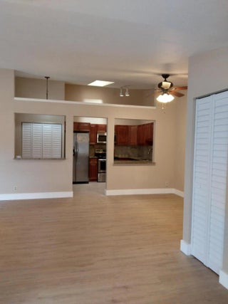 Beautiful 2 Bedroom, 2 Bathroom Villa with a fenced-in private courtyard. Freshly painted and new LVP flooring (wood look) with 5-inch baseboards. NO popcorn ceiling, NO carpeting. Kitchen has wood cabinets with granite counter tops, stainless steel appliances. Full size washer and dryer in unit. New accordion hurricane shutters. Great convenient location. Community has a pool, clubhouse, tennis and pickleball courts. Wonderful place to call home!