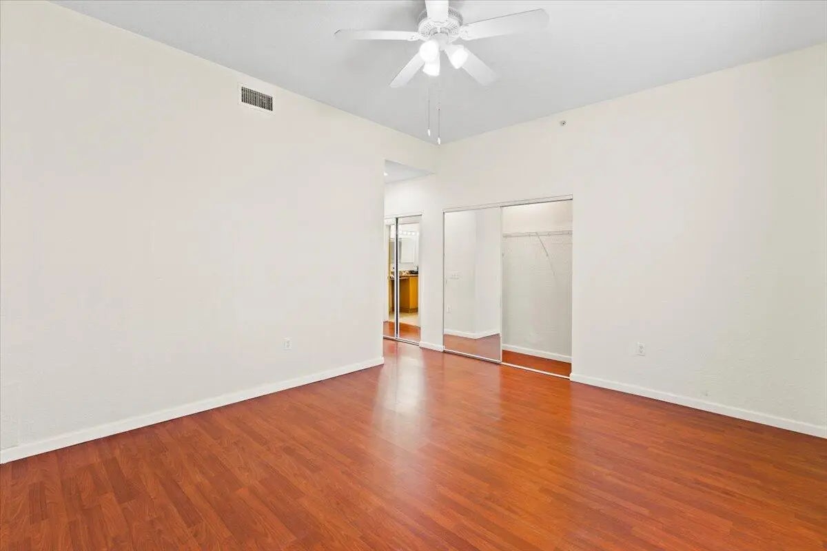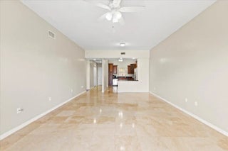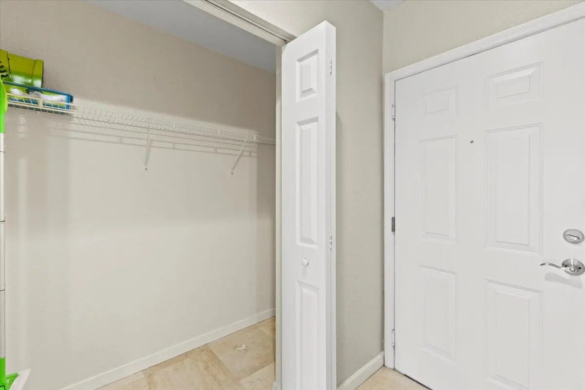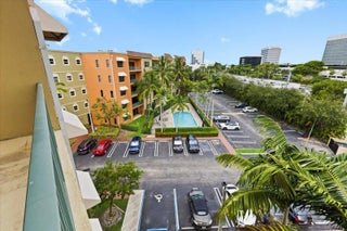 Top-floor 2BR/2BA with soaring ceilings, marble floors, and pool-view balcony in a prime West Palm location. This bright and spacious residence offers an open, airy feel with abundant natural light throughout.The thoughtfully designed kitchen blends style and function with stainless steel appliances, granite countertops, pull-out pantry storage, a Lazy Susan, and generous cabinetry for exceptional organization.The split-bedroom floor plan provides privacy and flexibility. The primary suite is designed for relaxation, featuring a deep jetted soaking tub, separate walk-in shower, private vanity area, and three closets for impressive storage. The second bedroom and full bath provide comfortable additional living space with excellent privacy.