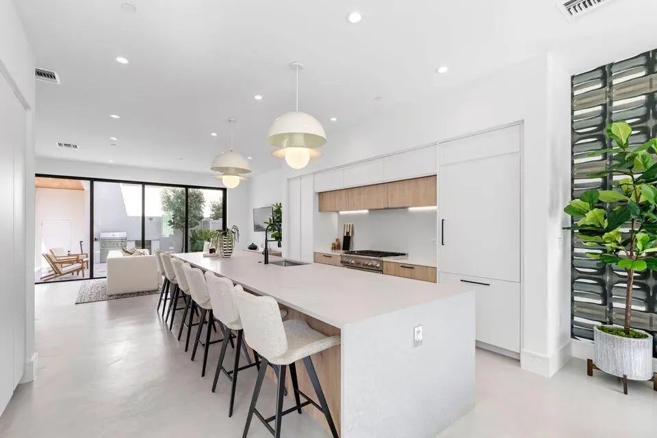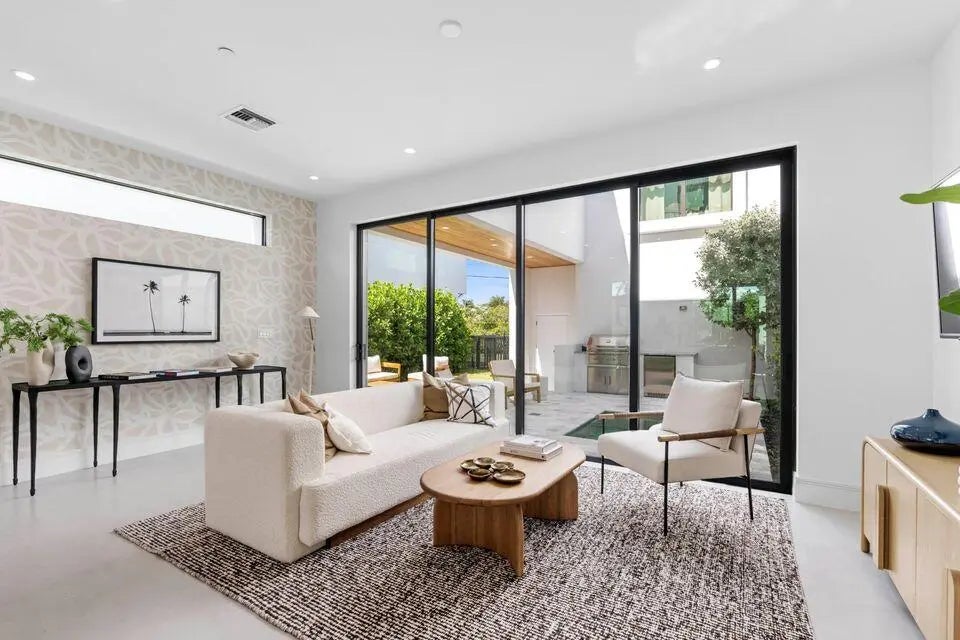 Unwind in your private heated pool and spa. Floor-to-ceiling sliders fully retract, opening to a lush tropical courtyard complete with a gas grill-perfect for entertaining or relaxing after a long day.Offering over 2,800 sq. ft., this residence features 3 bedrooms, 3.5 bathrooms, and a 2-car garage with ample storage for beach gear and bikes. The chef's kitchen is outfitted with Thermador appliances and an entire wall of custom cabinetry. The spacious primary suite includes two walk-in closets and a spa-inspired bath. Both secondary bedrooms have en-suite baths, and the second bedroom also offers a walk-in closet.Experience the best of South Florida living-walkable to dining, entertainment, and the waterfront jogging trail, yet tucked just beyond the city bustle.