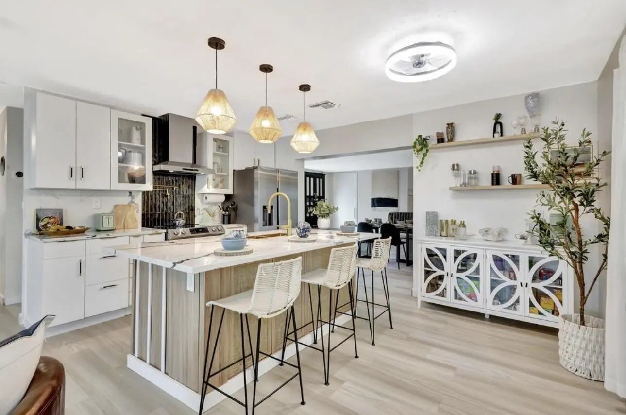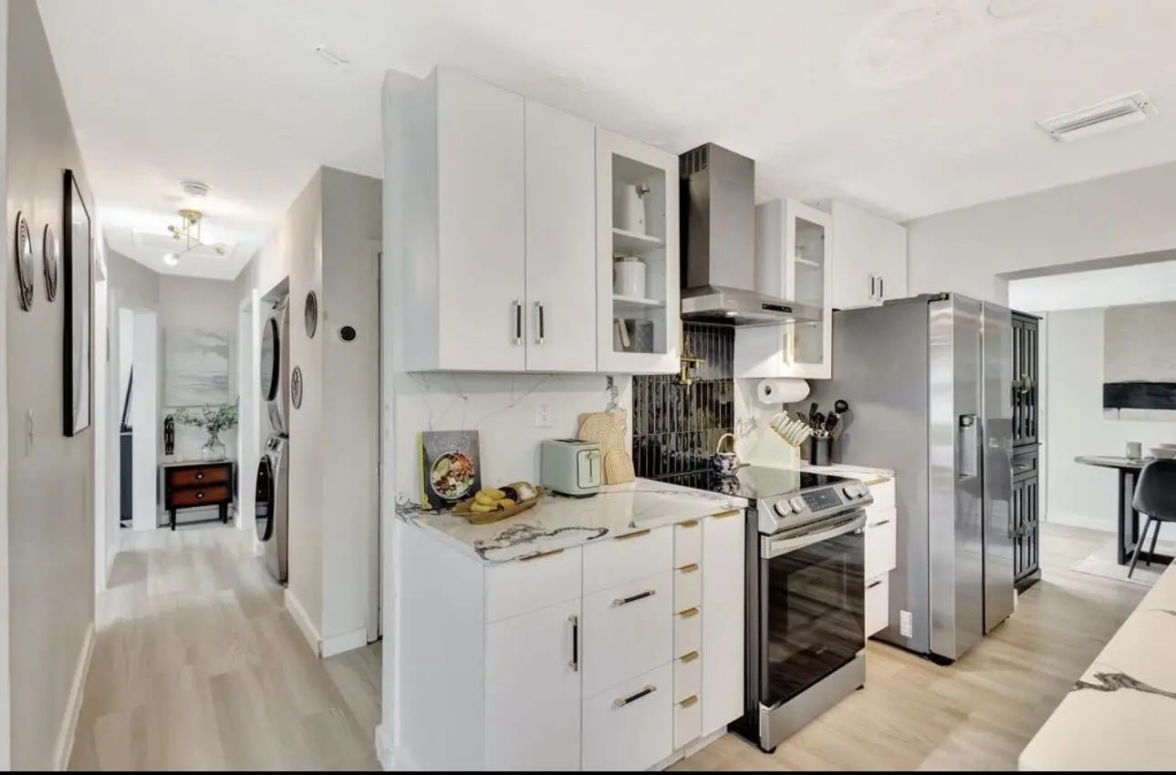 Modern, turnkey, and fully renovated 4/3 just 1.5 miles to the beach and Intracoastal. Located in a quiet neighborhood, this redesigned home offers 1,574 sq ft of stylish living. Ideal for full-time living or investment. Enjoy a private backyard retreat with a pergola, outdoor kitchen-bar, and fully fenced yard with his & her sheds, plus room for a pool where one previously existed.Major upgrades include a new A/C with ductwork, remodeled primary bath, repaved driveway, new gutters, and fresh interior updates.Close to dining, shopping, and the vibrant Riviera Beach Marina, home to the luxury Nautilus 220 residences and proposed Margaritaville hotel, placing you in the heart of a fast-growing coastal community.