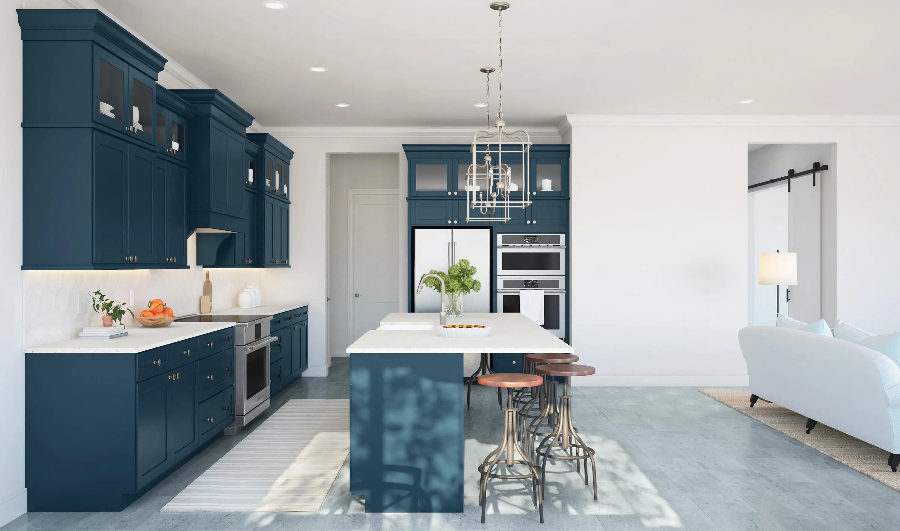 The Wicklow IV delivers an impressive 3,684 square feet of living space with 5 bedrooms and 4.5 bathrooms designed for modern lifestyles. A first-floor Extra Suite with private bath offers comfort and convenience for guests. A private home office with stylish barn doors provides the perfect remote work setting. The light-filled great room showcases views of the covered patio and backyard and flows into a spacious kitchen with a sizable pantry and charming adjacent dining area. Upstairs, you'll find a versatile loft, conveniently located laundry room, and generously sized bedrooms, including Bedrooms 3 and 4 sharing a three-quarter bath. The elegant primary suite features a huge walk-in closet and a private bath designed for relaxation. Residents enjoy resort-style amenities steps from home