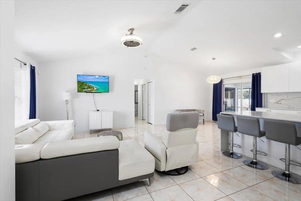 Enjoy Florida living year-round with your private pool and spacious backyard situated on a desirable lot. The enclosed, air-conditioned patio is currently being used as a home office, offering flexible space for remote work, a playroom, or additional living area. Beautifully updated 3-bedroom, 2-bath pool home in a prime Port Saint Lucie location with easy access to I-95 and Saint Lucie West. This home features a stunning renovated kitchen with quartz countertops, a waterfall-edge island, and a modern design that anchors the main living space perfectly for entertaining. Conveniently located near shopping, dining, and commuter routes, this home combines style, function, and location in one exceptional opportunity.