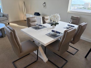 Upper Penthouse with direct East facing intracoastal and Ocean views! This Beautiful NEWLY FURNISHED & DECORATED two-bedroom, two-bathroom condo with an office is available for your SEASONAL RENTAL. 3 BRAND NEW WALL MOUNTED QLED TV's are on the way and will be installed shortly! This condo has brand-new, Luxury carpeting and is freshly painted. The kitchen showcases Brand new quartz countertops, microwave, and cooktop. This condo is impeccably furnished and decorated with all brand new furniture and decor. Both bedrooms have BRAND NEW KINGSIZE BEDS! There is a dedicated office with a wet bar in case you need to get a little work done. Large closets and a brand new washer dryer are also included in this gem.