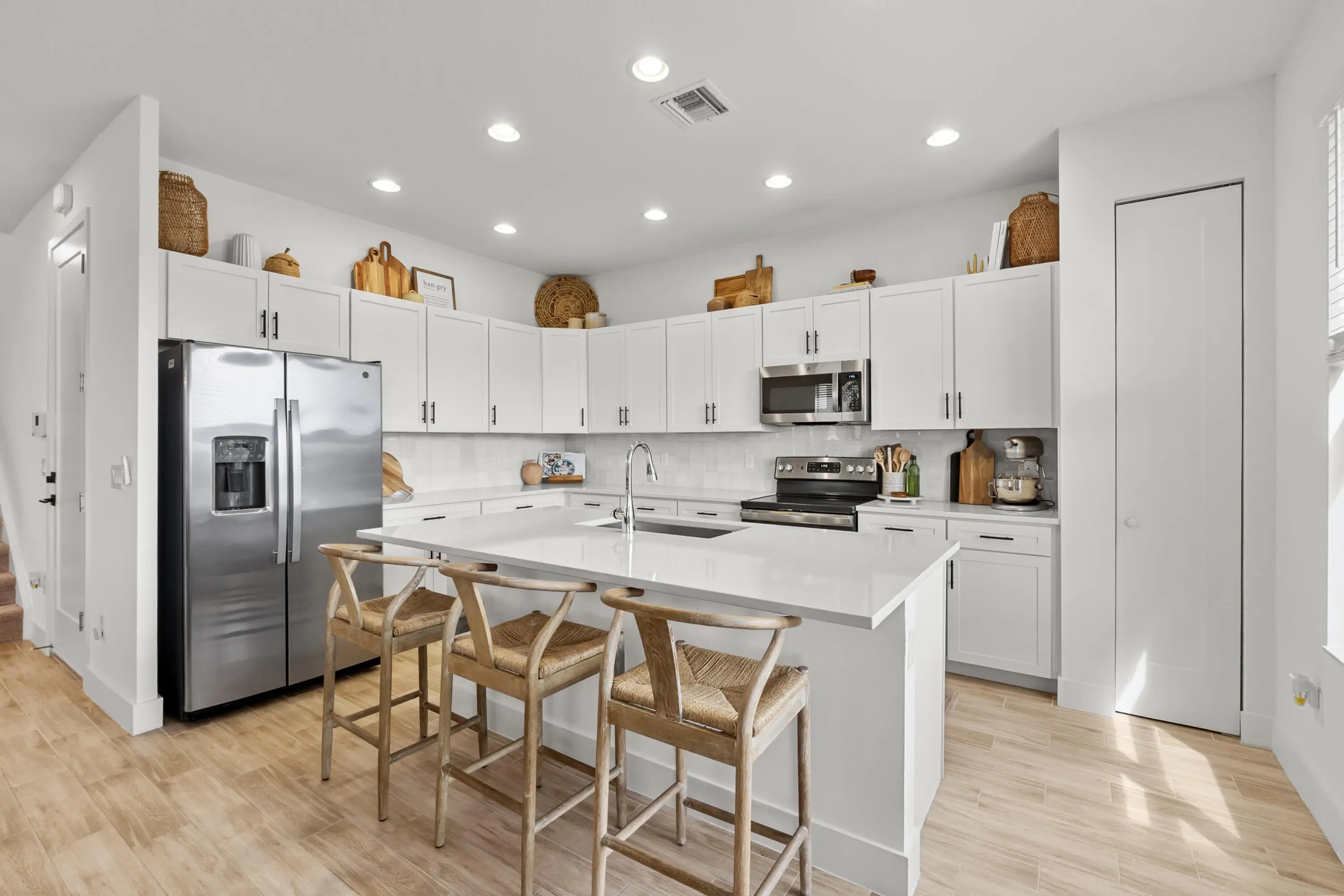 Welcome home! Built in 2021, this waterfront home offers the rare opportunity to own a newer construction property without paying today's new build prices! This Magnolia model is turn-key, everything has been upgraded leaving you with nothing to do but unpack your belongings! Located in the highly sought after Sky Cove community of Westlake. Tile throughout the entire home. Kitchen features quartz countertops, upgraded kitchen cabinets & stainless steel appliances. All bathrooms are also finished with quartz countertops. The master suite includes two separate custom built closets. Master shower offers a seamless glass shower with pebble tile on the shower floor. The second bedroom upstairs also has a custom built