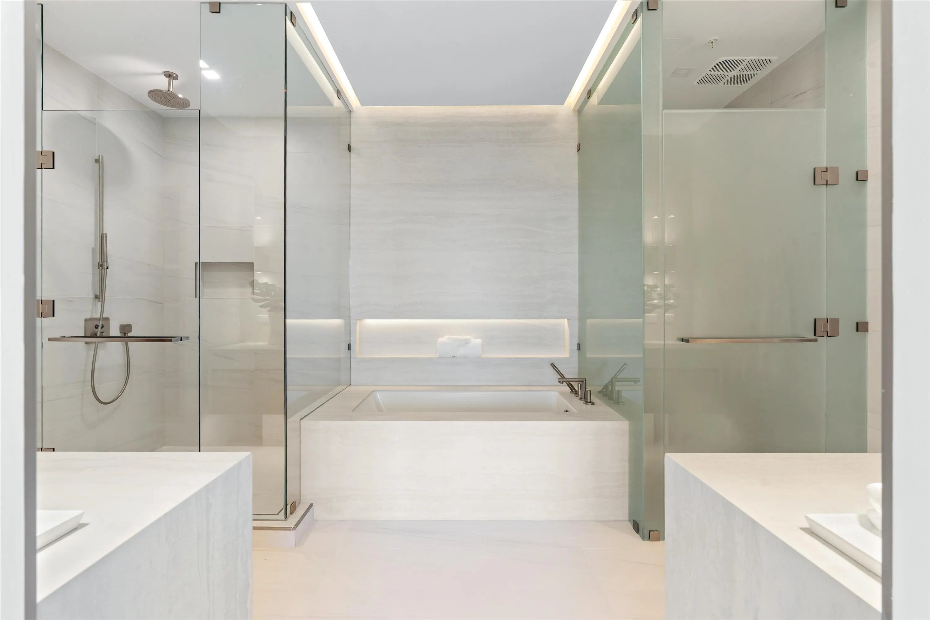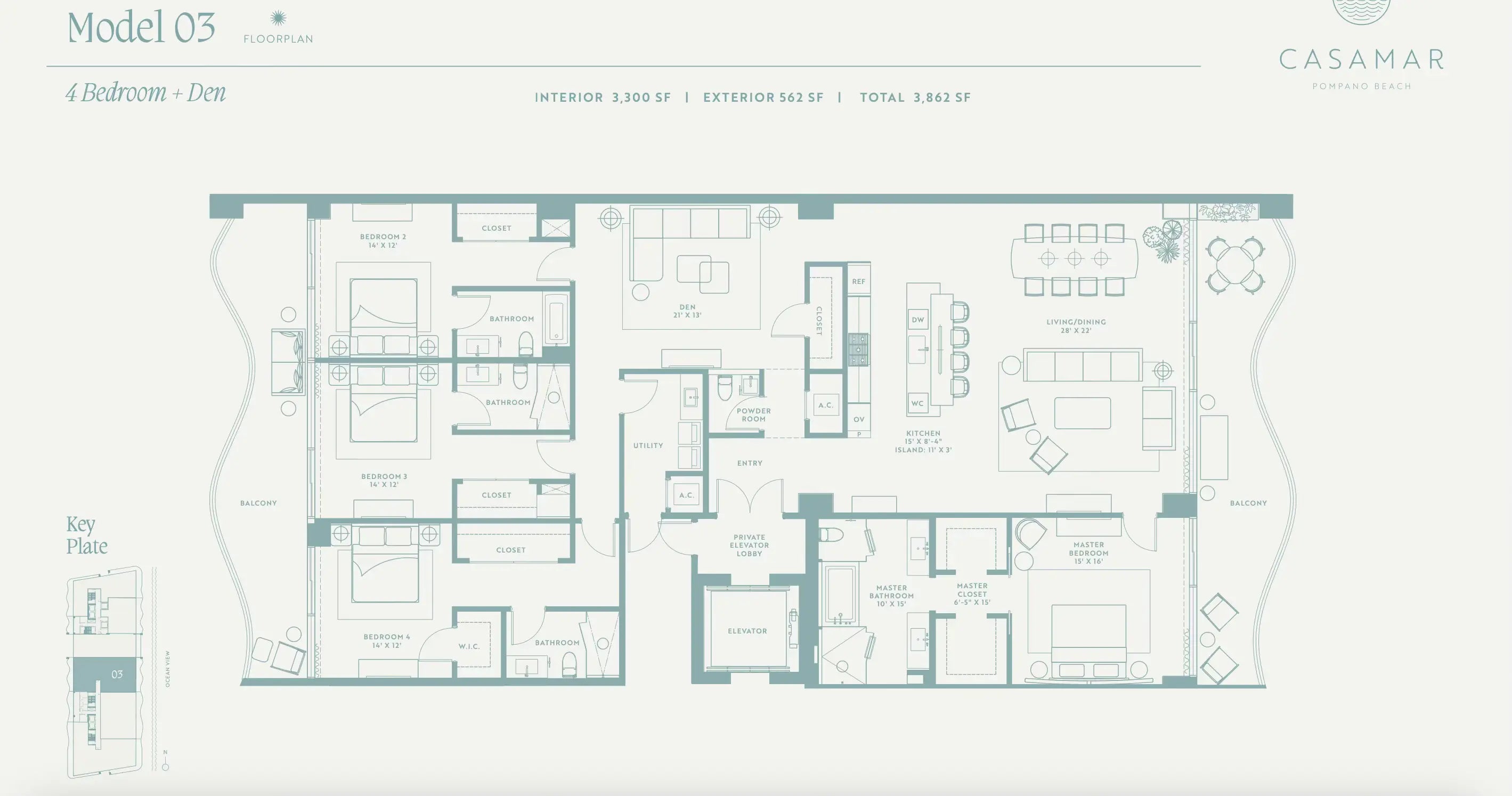 Experience unparalleled oceanfront living at Casamar, Pompano Beach's newest luxury condominium. This spacious 4-bedroom, 4.5-bath plus den residence offers up to 11 ft. ceilings, 3,300 sq. ft. of interior space and 562 sq. ft. of outdoor terraces, totaling 3,862 sq. ft. of exquisite coastal living. The flow-through layout features floor-to-ceiling glass showcasing breathtaking Atlantic Ocean and Intracoastal views, perfect for enjoying both sunrises & sunsets. Elegant upgrades include porcelain flooring, custom Italkraft kitchen cabinetry, and Wolf and Sub-Zero appliances with a natural gas cooktop. Residents of Casamar enjoy resort-style amenities including sunrise and sunset pools, a state-of-the-art fitness center, pickleball court, golf simulator, spa, game room and more.