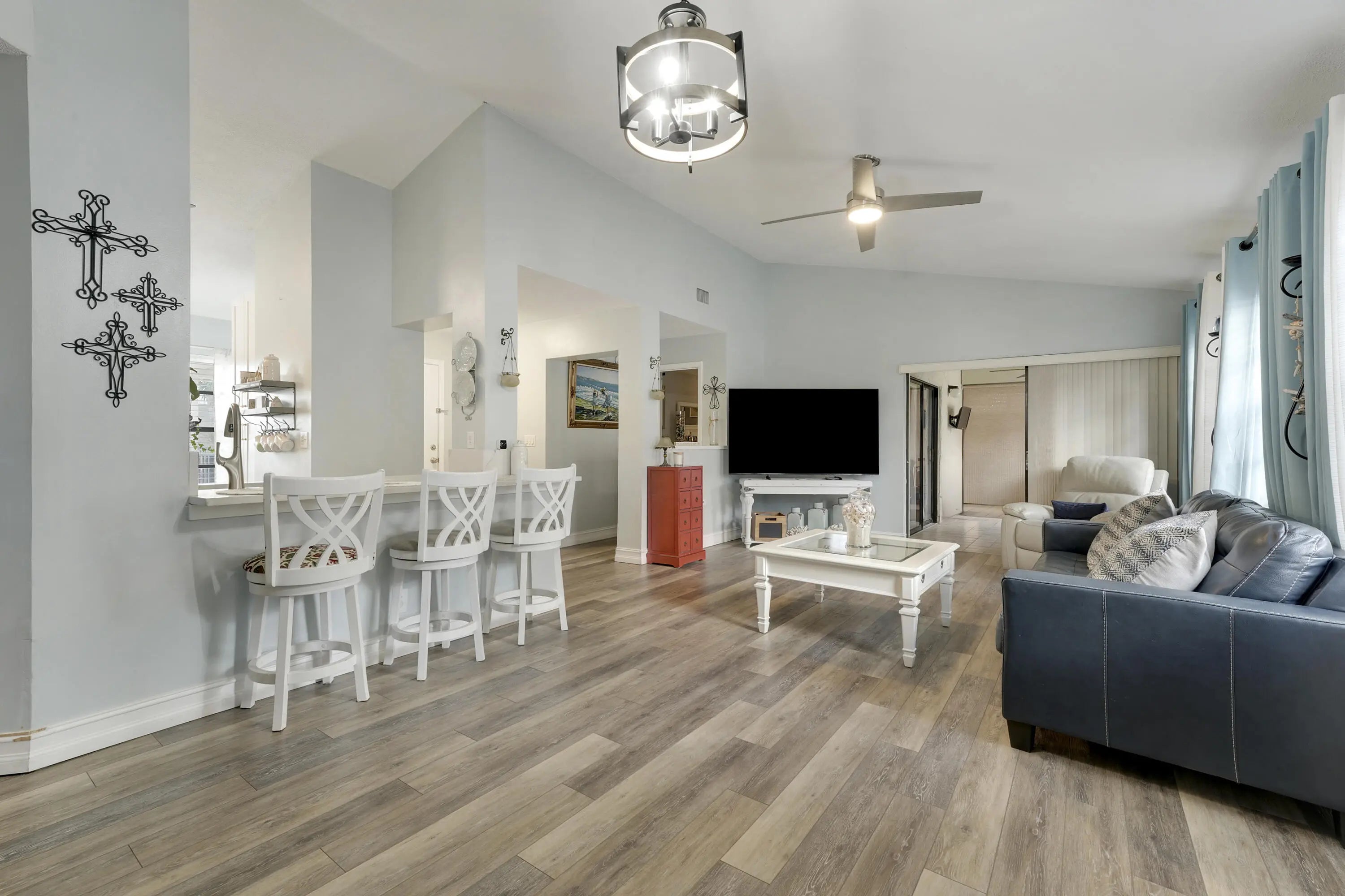Updated 2BR/2BA second-floor condo in a desirable 55+ Lake Worth community. Features vaulted ceilings, laminate wood flooring throughout, updated kitchen with modern cabinets and appliances, and a spacious living area filled with natural light. Enjoy a large screened lanai perfect for relaxing and taking in the Florida breeze or maintain under air for year round use. NEW AC 2023, NEW Roof 2024, Building Freshly painted 2025HOA includes Water, Cable & Internet. Community Heated Salt Water Pool, Fitness room, Pickle Ball, Tennis & Numerous Clubs & Activities. Gas Grills also provided for your convenience at Picnic Area . Conveniently located near shopping, dining, medical facilities, and beaches.
