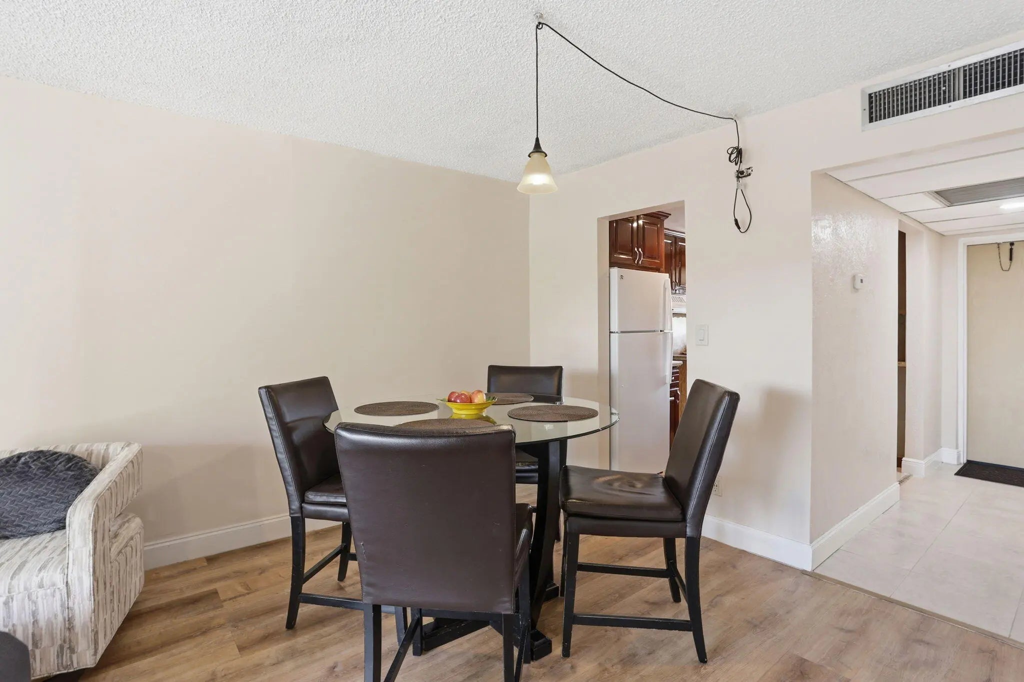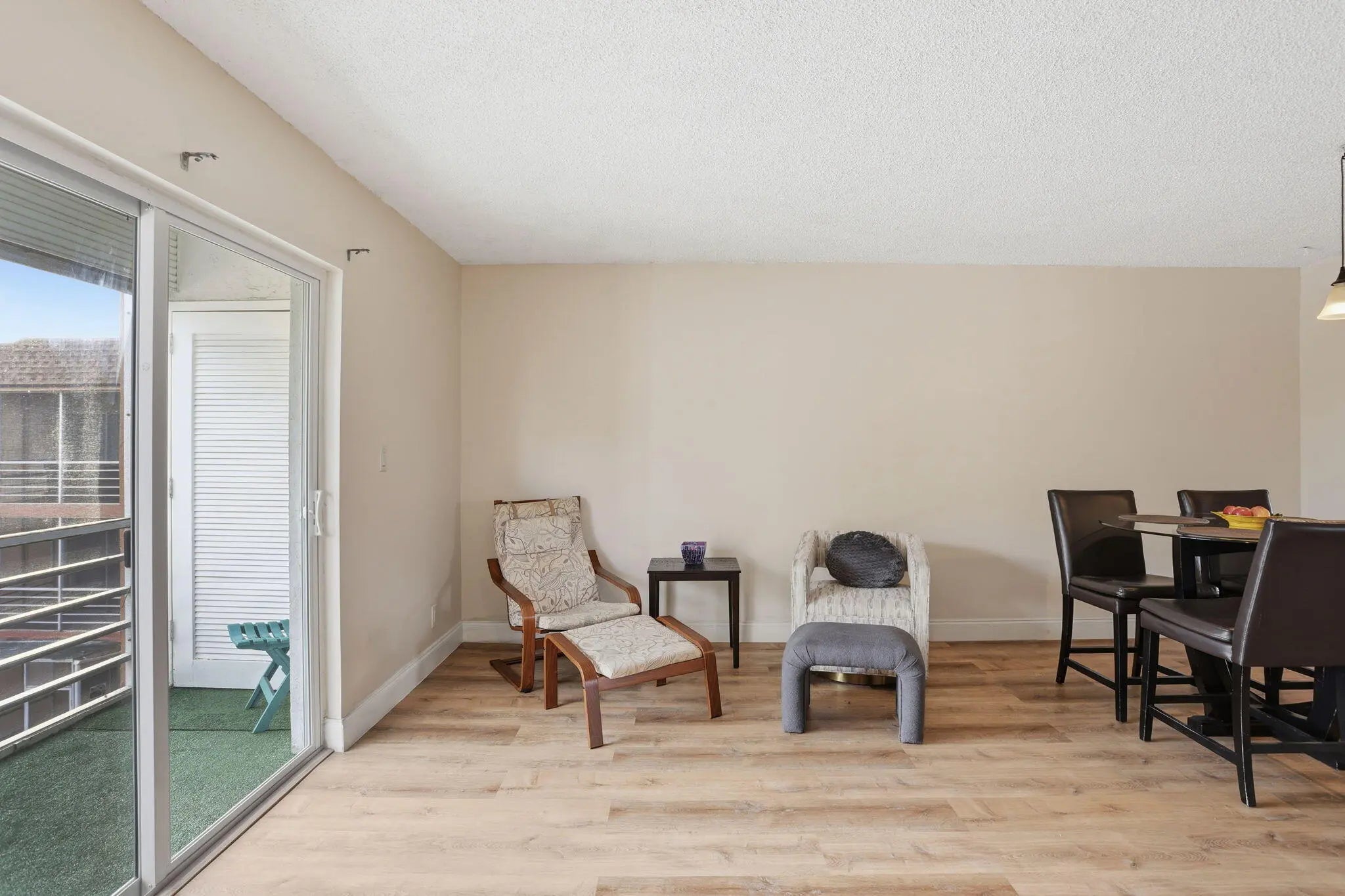 This is a good public remarks: Welcome to this well-maintained 2-bedroom, 1-bathroom third-floor condo with a pleasant pool view. The unit features impact windows throughout and vinyl plank flooring in the living, dining, and bedroom areas. The kitchen offers granite countertops (2013) and a white refrigerator replaced in 2016-2017. Additional updates include AC replaced in 2020-2021, water heater (2015), new baseboards, and recently replaced ceiling sheetrock. The primary bedroom includes blackout shades, new shelving, closet doors, and a dark wood ceiling fan. Community laundry is conveniently located on the same floor with an additional facility on the second floor.