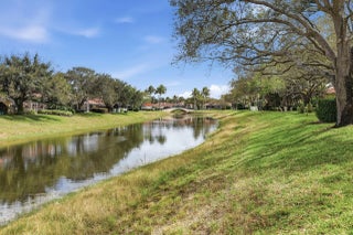 Come see this beautiful Windsor model in the popular Riverwalk community. This home is a 4 bed plus den, screened pool home overlooking a serene canal. The floor plan of this home is split 3 ways, offering a second master bedroom with ensuite bathroom. This home also features a new, unique, barrel style metal roof! The solar panels will help keep your energy costs low. You will also find a closed in porch with hurricane impact sliders. The community offers manned security, interconnecting walkway bridges, a beautiful clubhouse with an on-site restaurant, community pool, tennis, pickleball, and more! Riverwalk is centrally located and close to the turnpike, the international airport, beaches, I-95, shopping, restaurants and downtown WPB. Come see it today!